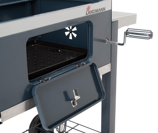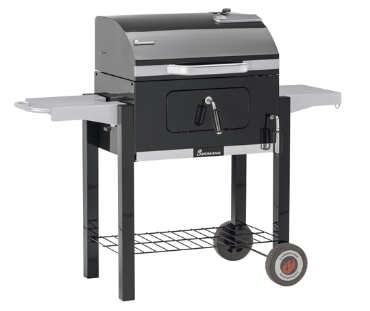 DORADO FASZENES GRILLKOCSI DUPLA FALÚ FEDŐVEL, LEHAJTHATÓ POLCOKKAL, HŐMÉRŐVEL A FEDÉLBEN, ZOMÁNCOZOTT GRILLRÁCSOKKAL ÉS FOKOZATMENTESEN ÁLLÍTHATÓ SZÉNTARTÓVAL, HAMUTARTÓVAL, SÜTŐFELÜLET: 42X56 CM
