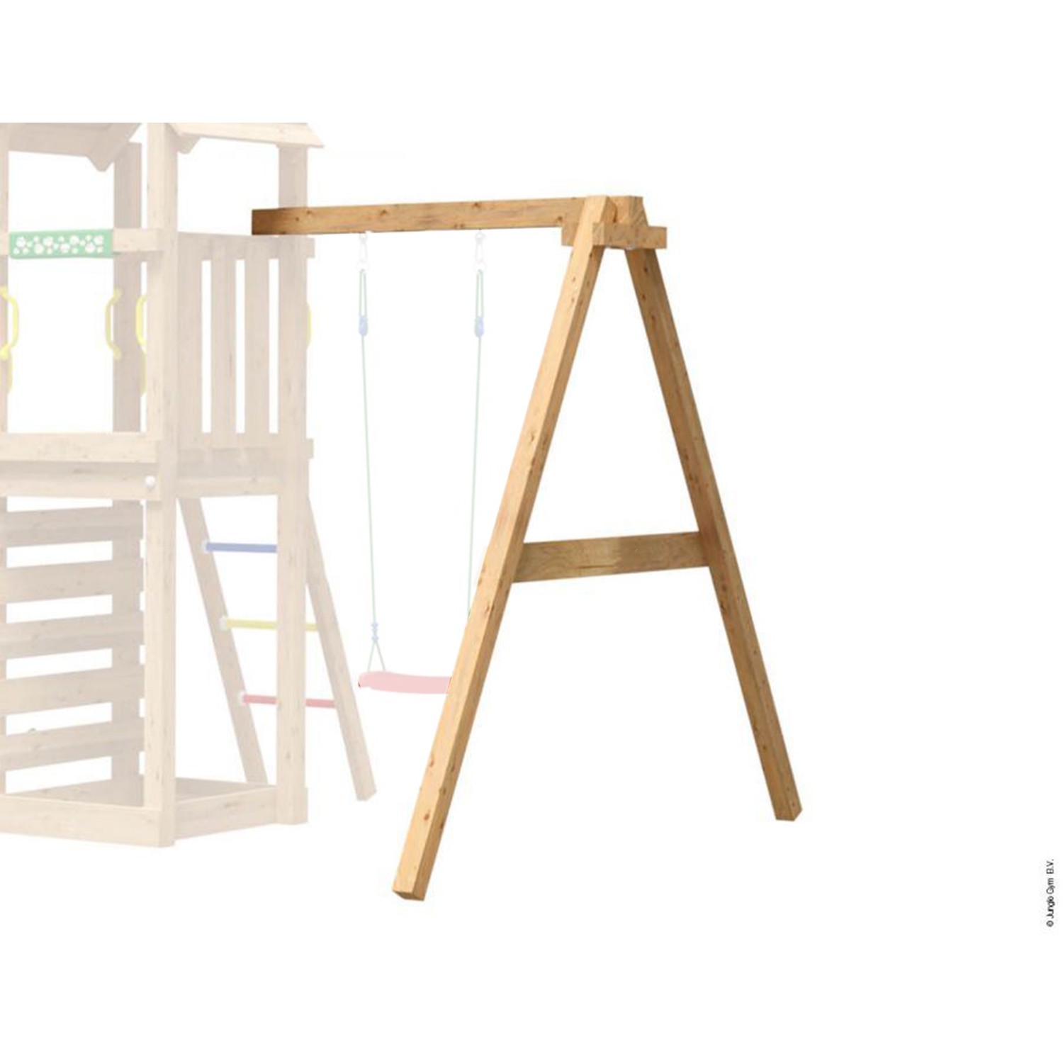 Minden Jungle Gym torony kiegészíthető egy egy állású Swing Modullal. Kisebb mászókákhoz 220 cm, nagyobbakhoz 250 cm-es kivitelben. A csomag tartalmaz 1 db hintát és a hinta rögzítéséhez szükséges kampókat. Anyaga magas nyomáson impregnált fenyő.