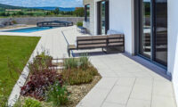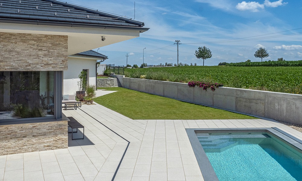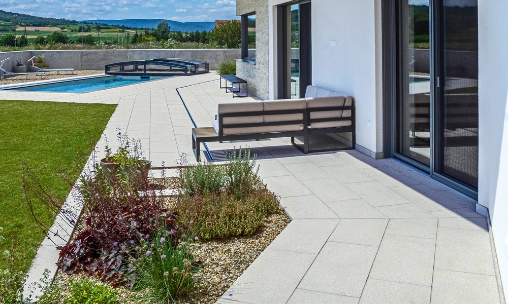 A sík és csúszásmentes lap kertek és teraszok burkolására alkalmas.
